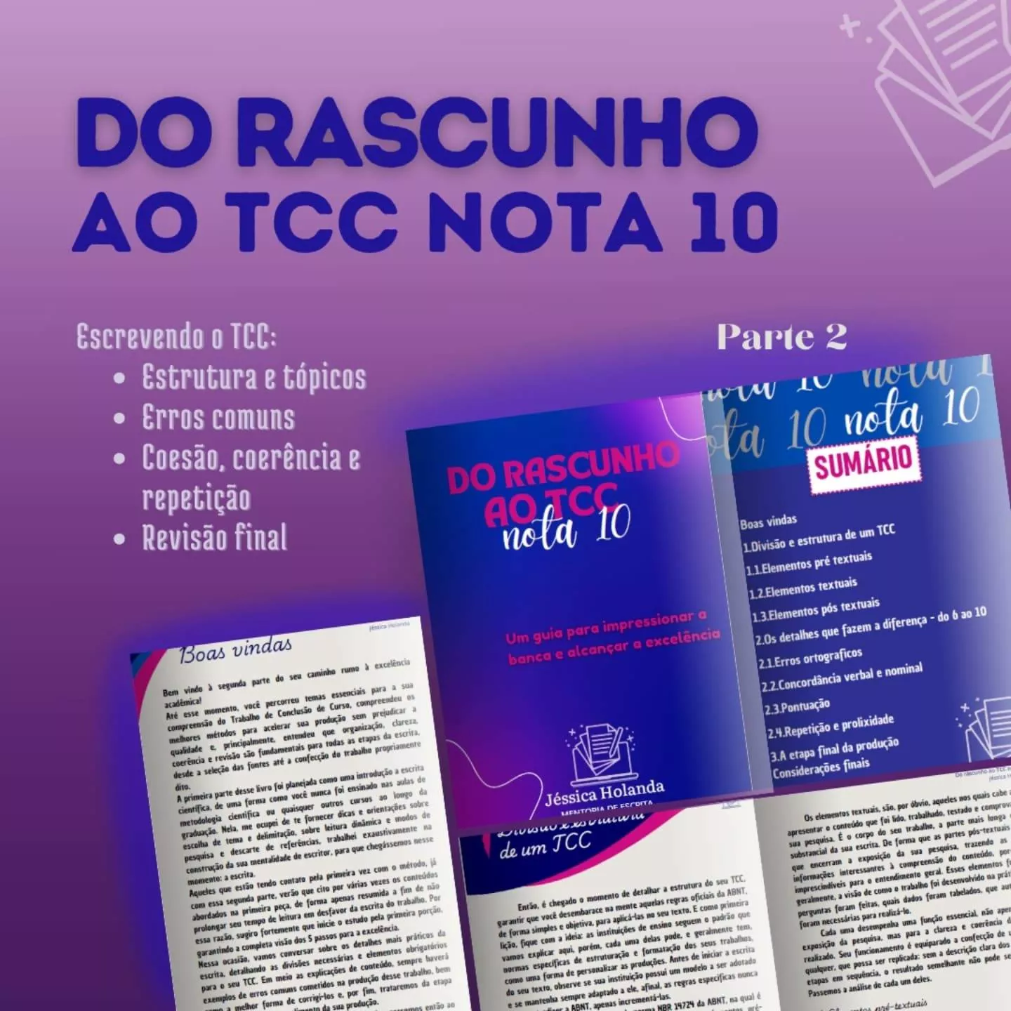 Essa é a 2ª parte do livro, recomendada para todos os estudantes que ja iniciaram o processo de escrita do TCC, mas ainda possuem muitas dúvidas, apresentam entraves e bloqueios criativos, dificuldades com coesão e corência textual, ou desejam transformar o seu texto em um trabalho de impacto e excelência.